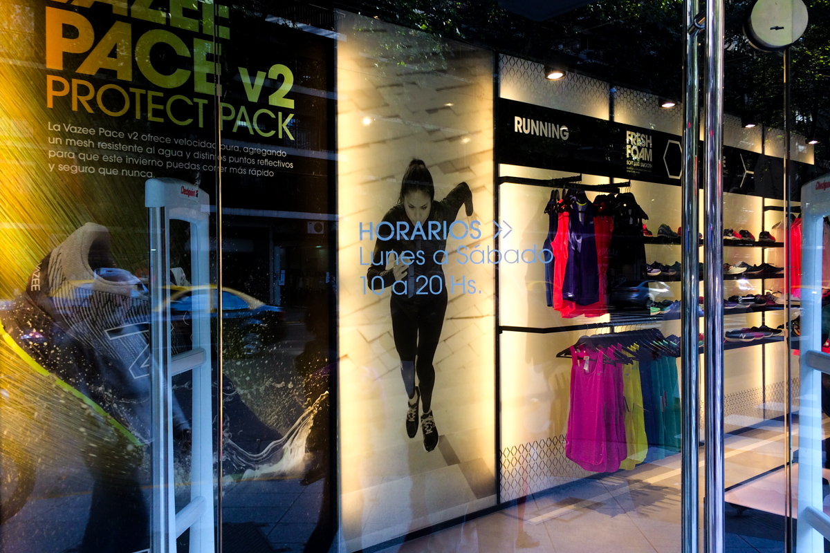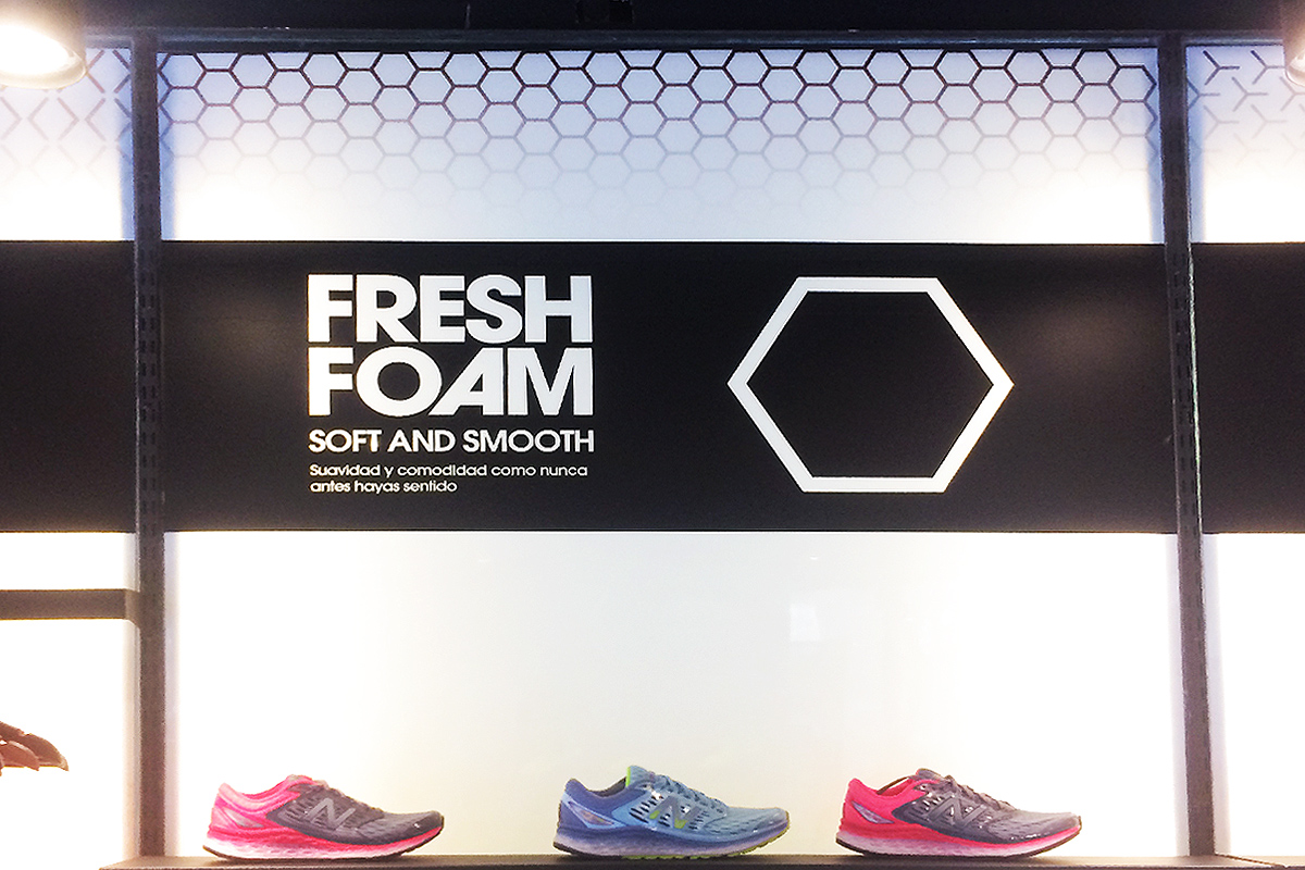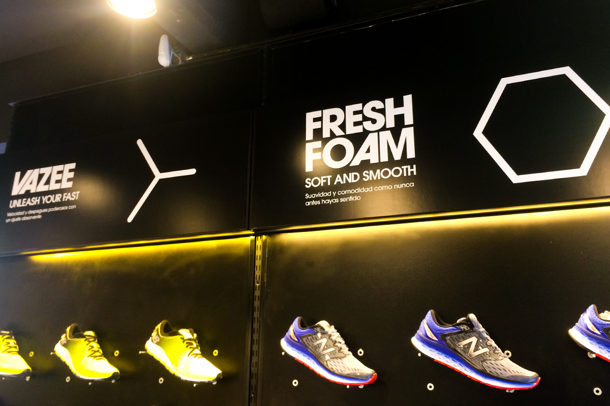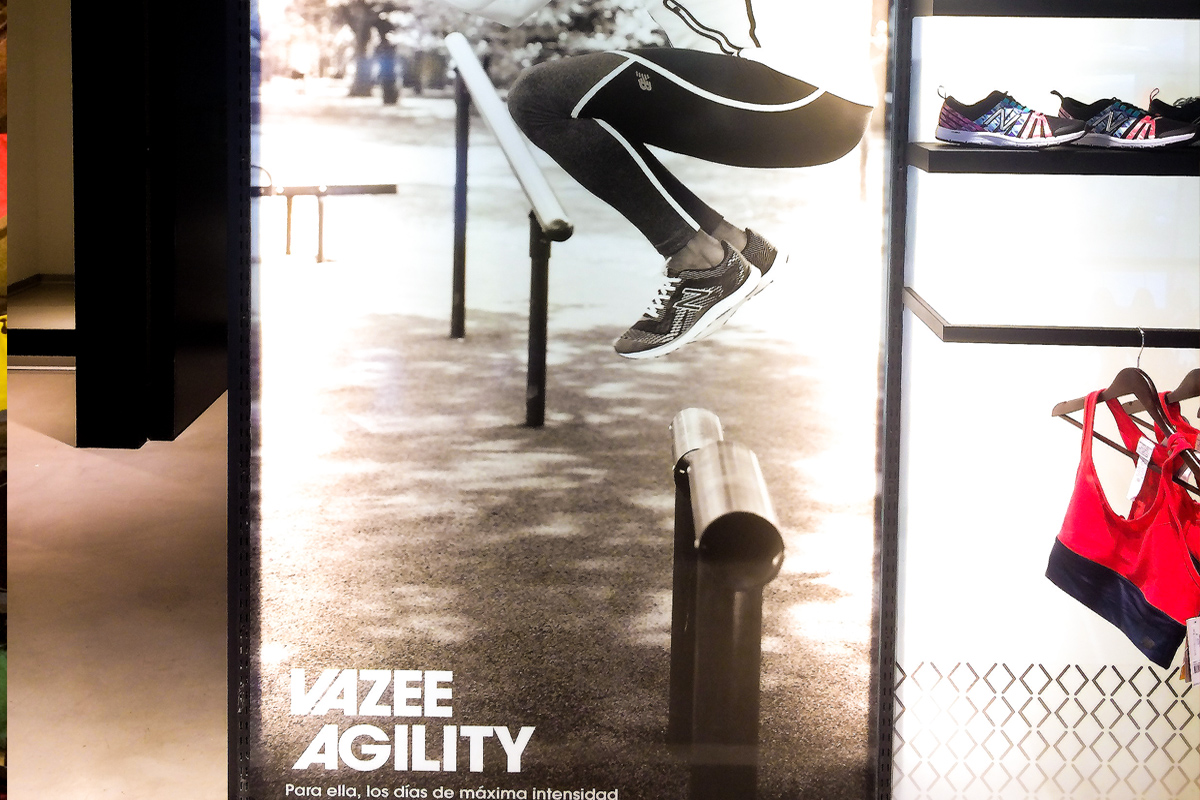 Decoramos el local de New Balance en Av. Santa Fe, el trabajo incluyó variedad de piezas y materiales. Realizamos y colocamos vinilos de cortes, carteles backlight, vinilo impreso y piezas especiales (lumínicas) en pvc.